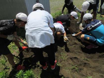 6月15日(火)授業風景〜3校時6年ジャガイモ掘り〜 公開日 2021/06/15 更新日 2021/06/15 できごと 6年生が理科の時間に教材として使ったジャガイモを掘り起こしていました。立派ないもが地下茎にできていました。食べられるものを掘り出すときは、みんな一生懸命です。