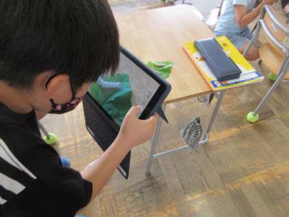 6月16日(水)授業風景〜4校時3年総合〜 公開日 2021/06/16 更新日 2021/06/16 できごと 3年生の総合では、カイコを育て、カイコについて調べています。飼育しているカイコもだいぶ大きくなってきました。もう目が離せなくなっています。葉もたくさん食べるようになりました。繭を作りそうなものも出てきました。子どもたちはタブレットのカメラを使い成長の記録をとっています。