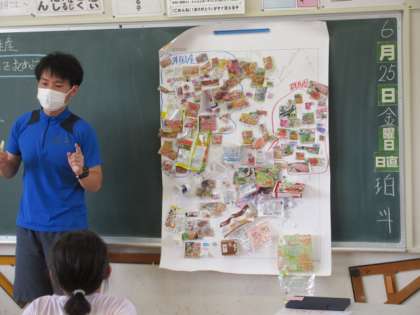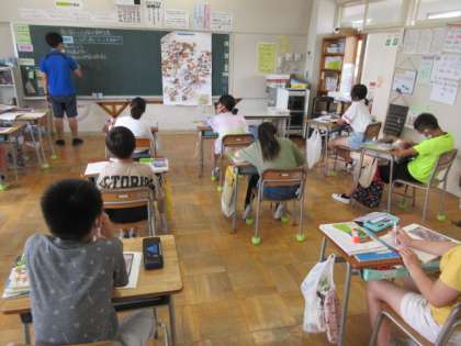 5年生の社会は、私たちの食卓にのる食材がどこから運ばれてくるのかを学習していました。野菜は近くから、遠い外国からは、乳製品や果物などが運ばれてくることに気づけました。