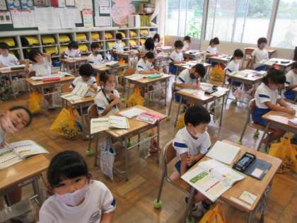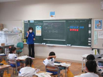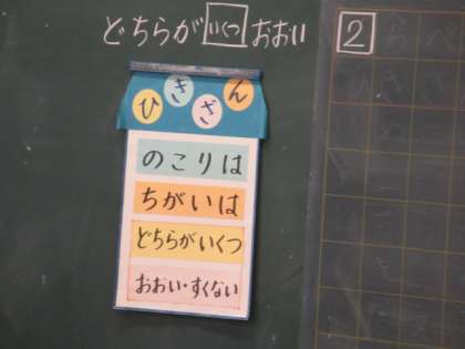 6月も最終日になりました。昨日までと違い、ちょっと肌寒い天気です。1年生は、算数の授業で引き算の学習でした。リンゴとミカンの数を比べ、どちらがどれだけ多いのかを求める問題をしていました。