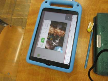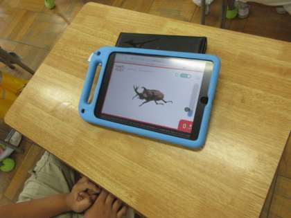 2年生は生活科の授業「生き物なかよし大作戦」でした。タブレットを使って、昆虫の写真や動画等を見ていました。あまりのリアルさに、歓声(悲鳴?)が鳴り響いていました。