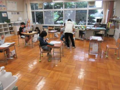くすのきの児童は、各自のペースで個々の課題に取り組んでいます。1校時ということもあり全員がそろっていました。