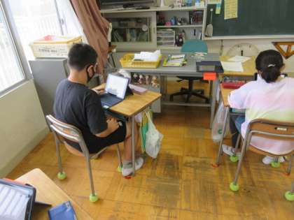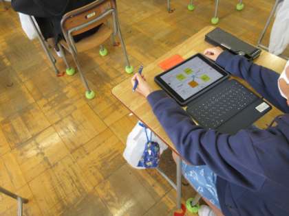 週明けの月曜日、天気が相変わらずはっきりとしません。少し肌寒く感じる日です。1校時5年生は国語の授業で「どちらを選びますか」というディベートの学習でした。タブレットを使ってジャムボードというアプリ上で二つの考えを付箋紙を使って表現していました。