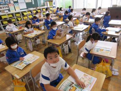 1年生の国語です。カタカナ表記の学習でした。まず最初にカタカナで表されているものをたくさん紹介していました。