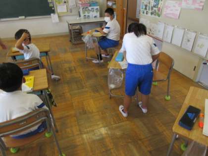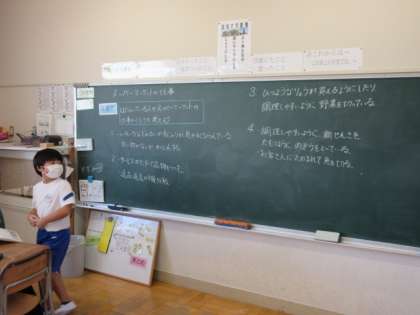 3年生の社会科の授業です。「スーパーマーケットの仕事」について、「働いている人やスーパーマーケットの仕事の工夫を考えよう」のめあてのもと学習していました。