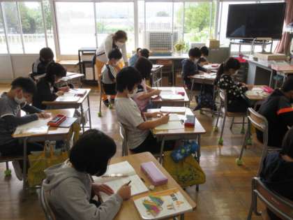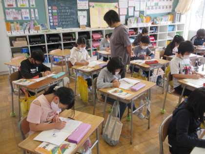 4年生も算数です。割算の筆算の仕方について学習をしていました。このあたりからだんだんと算数が難しくなっていきます。