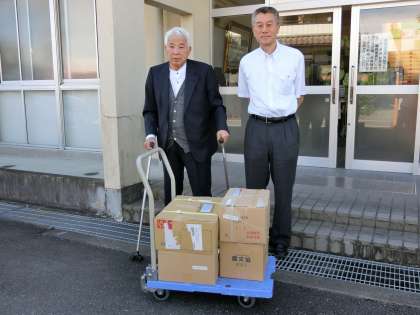 本日、サンヨー株式会社(藤岡市立石)社長の高瀬様より、たくさんの本(26種類94冊)を寄贈していただきました。高瀬様は、平成6年から毎年、市内全小中学校に図書を寄贈してくださっています。「子供たちが読書により、感性を磨き、表現力を高め、創造力を豊かにして、未来に向かって大きく羽ばたいてほしい」という願いを込めて市内小中学校に本を寄贈してくださっています。本日は高瀬様本人が配本のために来校してくださり、その際には直々に「今後も読みたい本があれば、知らせてください」という温かな言葉もかけていただきました。なお、本日寄贈していただいた本は準備ができ次第、図書室に展示し、子どもたちに読んでもらおうと考えています。高瀬様の気持ちを無にしないためにも、今後も読書活動の推進に努力していきたいと思います。大変ありがとうございました。