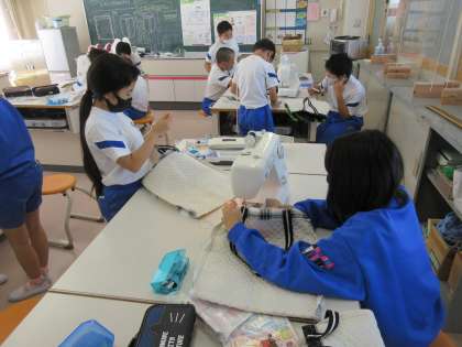 10月8日(金)授業風景〜2校時6年家庭科〜 公開日 2021/10/08 更新日 2021/10/08 2021.9〜できごと 6年生は家庭科の授業で手提げ袋を製作していました。よい袋ができそうです。