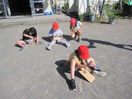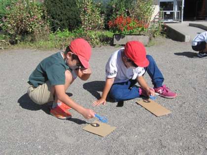 10月11日(月)授業風景〜2校時3年理科〜太陽の光(その1) 公開日 2021/10/11 更新日 2021/10/11 2021.9〜できごと 虫めがねと紙のきょりをかえたときの明るさやあたたかさをくらべながら調べました。
