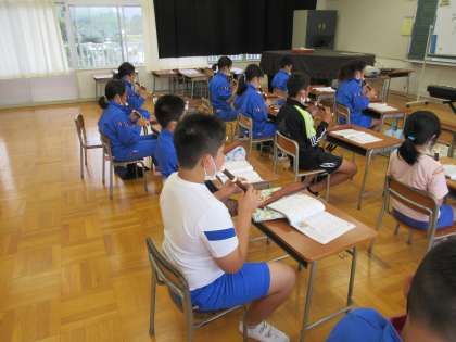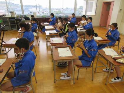 10月12日(火)授業風景〜2校時5年音楽〜 公開日 2021/10/12 更新日 2021/10/12 2021.9〜できごと 5年生は音楽室でリコーダーの演奏をしていました。コロナも現在は警戒度が下がっているので、感染対策をしながら(換気や密の防止)リコーダーの学習も始めています。キリマンジャロという曲を演奏していましたが、耳に残る曲です。
