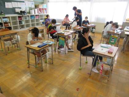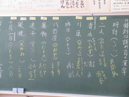 5年国語の授業です。漢字の読み方の学習でした。後半は一つの漢字を使って4組の2字熟語を作る問題に取り組んでいました。