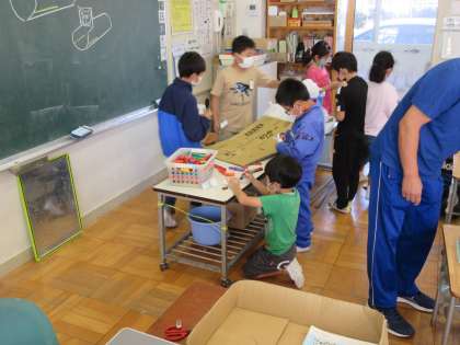10月14日(木)授業風景〜4校時2年図工〜 公開日 2021/10/14 更新日 2021/10/14 2021.9〜できごと 2年生も図工です。動くおもちゃを作っています。まだ全体像が見えてきませんが、どんなのができるか楽しみです。
