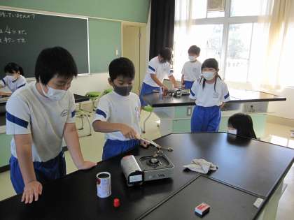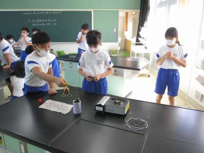 10月18日(月)授業風景〜3校時4年理科〜ものの温度と体積(その2) 公開日 2021/10/18 更新日 2021/10/18 2021.9〜できごと 金ぞくも、空気や水と同じように、あたためられると体積が大きくなり、冷やされると体積が小さくなりました。ただし、金ぞくの体積の変化は、空気や水にくらべてとても小さいことがわかりました。