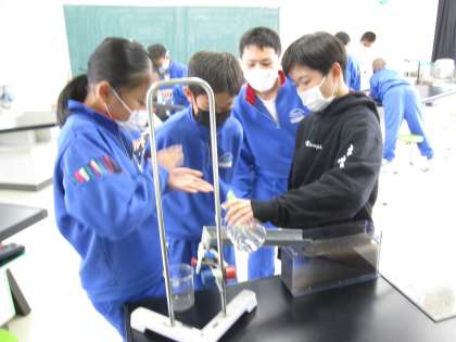 流れる水のはたらきと地層のでき方の関係を調べました。
