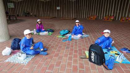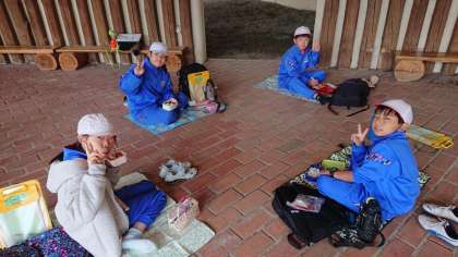 お弁当の時間になりました??ソーシャルディスタンスを保ちながら、班ごとに「いただきます」