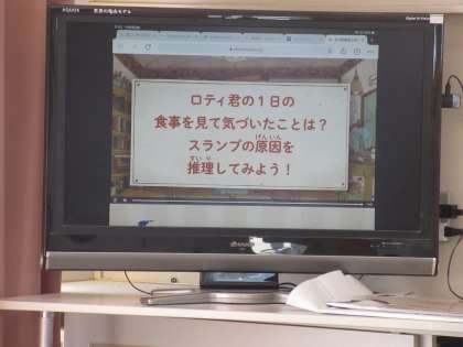5年生の家庭科の授業です。栄養のバランスについて考えました。三食偏った栄養では体調を崩すもとになることを学びました。