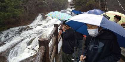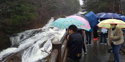 雨が半端ではありません!濡れながらも滝の見学です。水量が多く迫力があります