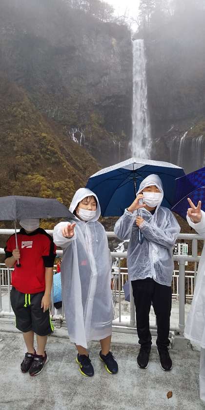 修学旅行〜華厳の滝〜 公開日 2021/11/09 更新日 2021/11/09 2021.9〜できごと すぐに華厳の滝まで戻ってきました。この雨でもたくさんの学校がいます。エレベーターも混雑しています。雨のために集合写真は断念しました。でも子供たちは元気です。