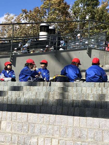 ちょっと風が強いけれど、お楽しみのお弁当です。おなかすた〜。