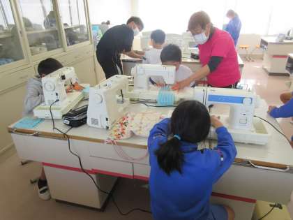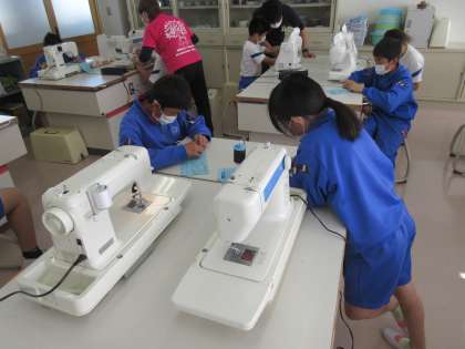 5年生は家庭科でミシンを使っての縫い方の学習です。