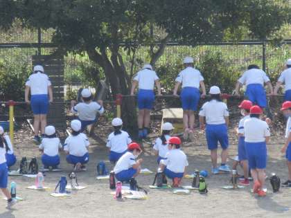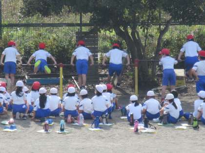 3・4年生が合同体育を行っていました。鉄棒の学習です。