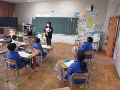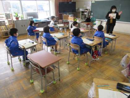 3年生の国語「短歌を楽しもう」の単元の学習でした。百人一首の話をしています。