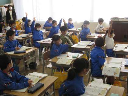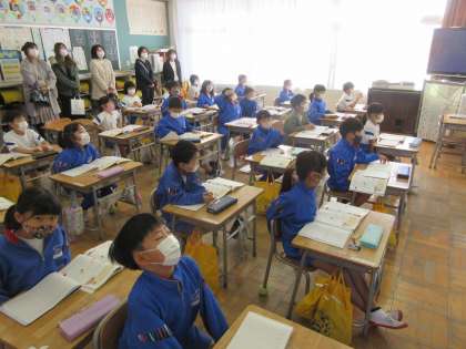 本日の午前中、学校公開を行っています。1校時の算数の授業の様子です。初めての授業参観で一年生も張り切っていました。