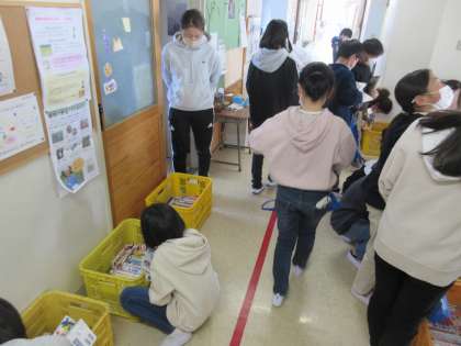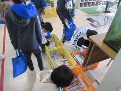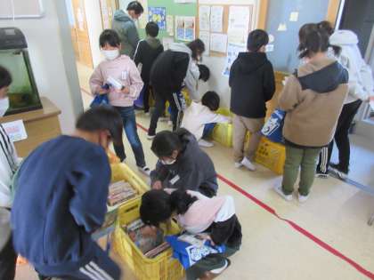 今日は巡回文庫(高学年)の来校日でした。子どもたちもいろいろな本が借りられるので、とても楽しみにしています。西玄関では、子どもたちがあれこれと本を選ぶ姿が見られました。読書好きな子がたくさん増えることを期待しています。