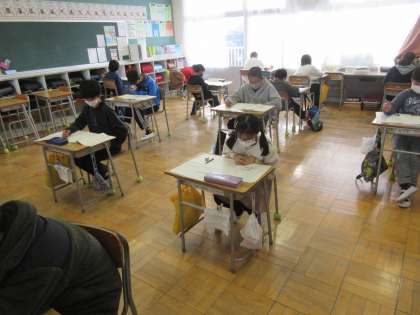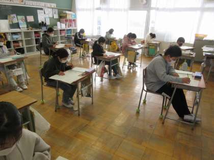 本日から明日にかけて、全学年で総合学力調査(学力テスト)を実施します。1〜4年生は今日は国語、明日は算数です。5、6年生は今日は国語と理科、明日は算数と社会です。今までに学んできた学習の成果が発揮されることを期待しています。写真は一生懸命、問題に取り組む5・6年生の様子です。