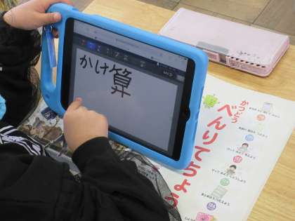 2年生の生活科です。「大きくなった自分のことをふりかえろう」の単元で、「2年生になってできるようになったことをかんがえよう」をめあてにした学習でした。タブレットを巧みに使ってみんなで共有していました。