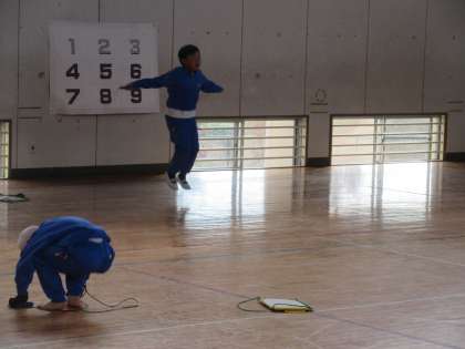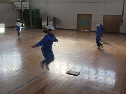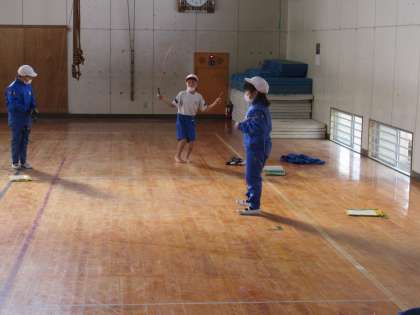 2校時は2年生が体育館で体育です。縄跳び運動を行っていました。結構跳べる子も多いです。