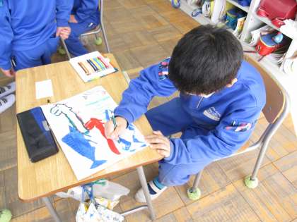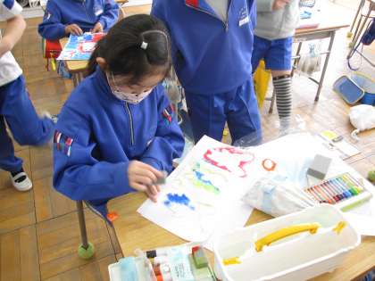 1月24日(月)授業風景〜6校時2年図工〜たのしくうつして(その2)