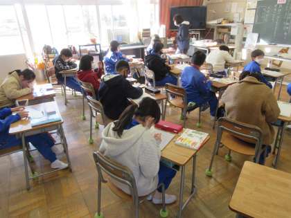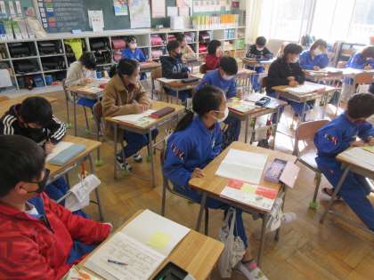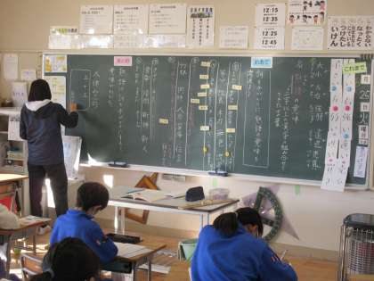 4年の国語です。初任研代替の先生の授業です。「訓を手掛かりに熟語の意味を考えよう」をめあてにした言葉の学習でした。