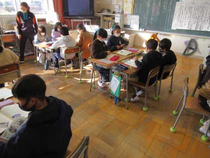 1月26日(水)授業風景〜1校時4年国語〜 公開日 2022/01/26 更新日 2022/01/26 2021.9〜できごと 1校時の4年生の国語です。「ウサギのなぞを追って」の単元です。これまでの学習を模造紙に書き込み、それをつなぎ教材として本時の学習に生かしています。