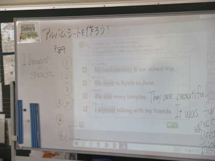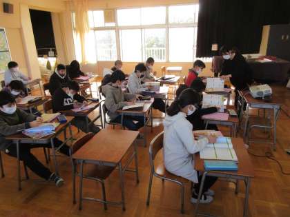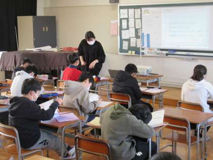 6年生の外国語の授業です。東中から英語の先生が来て授業をしてくれています。4月から東中に行っても、困ることはありませんね。
