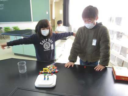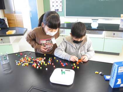 ブロックを使って使っていろいろな形を作り、形がかわっても重さがかわらないか、はかりで調べました。