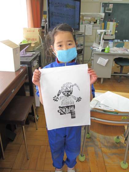 2月7日(月)授業風景〜6校時2年図工〜たのしくうつして(かみはんで)その3