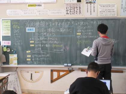 5年生の社会です。「自分たちと情報とのかかわりについて考える」ことがめあての学習です。情報モラル教育の内容になっています。