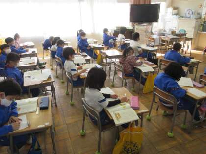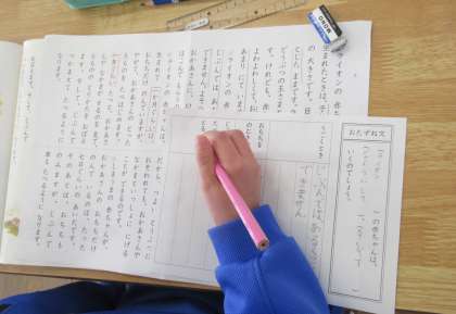 1年生の国語です。説明文「どうぶつのあかちゃん」の単元です。「ライオンの赤ちゃんはどのようにして大きくなっていくのか読み取ろう」をめあてにした学習です。