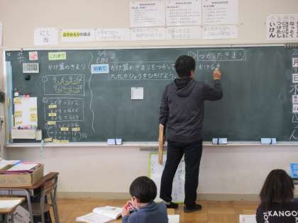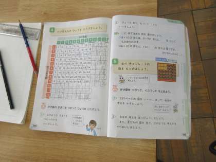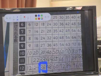 2年生の算数です。九九の応用の学習です。九九の表のきまりを見つけることで、10以降の表を作っていけることを学びました。