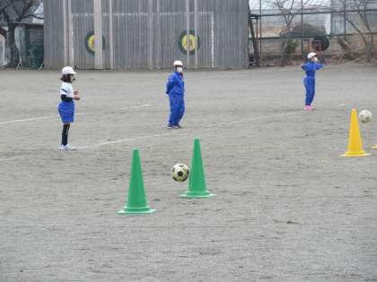 2年生の体育「ボールけりゲーム」の学習です。ボールが磁石のようにくっついて見えます。不思議です。