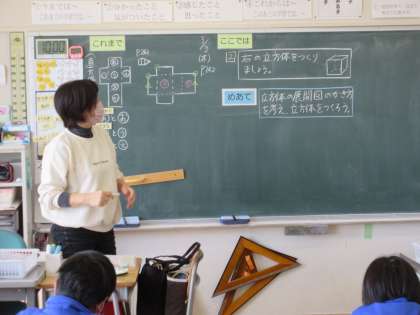 3月3日(木)授業風景〜2校時4年算数〜 公開日 2022/03/03 更新日 2022/03/03 2021.9〜できごと 4年生の算数です。立体の展開図の学習です。これまでで直方体の展開図を学習してきましたが、本時は立方体の展開図の学習でした。