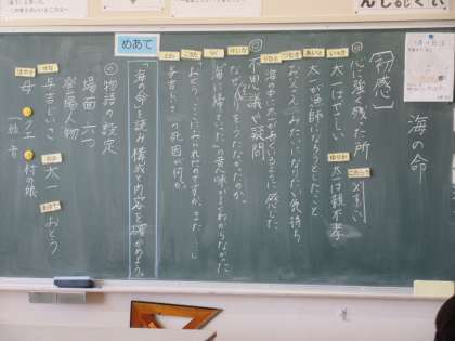 6年生の国語「海の命」の学習です。初発の感想を発表してもらった後で、「構成と内容」を確認していました。
