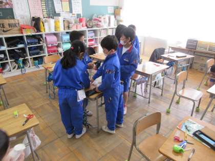 2年生の図工「音作りフレンズ」の学習です。何やら音の出るものを作っているのでしょうか・・