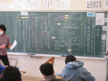 3月9日(水)授業風景〜1校時6年国語〜 公開日 2022/03/09 更新日 2022/03/09 2021.9〜できごと 6年生の国語「海の命」の学習です。本時はこの教材の中心部分「海の命が表すもの」をみんなで考えました。これまで、学習してきたことをつなげて考えることが必要です。