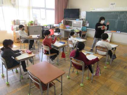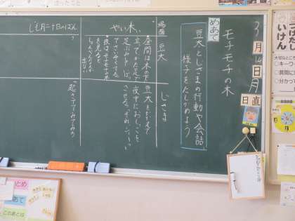 3年生の国語「モチモチの木」の学習です。「豆太とじさまの行動や会話、様子を確かめる」ことが本時のめあてです。