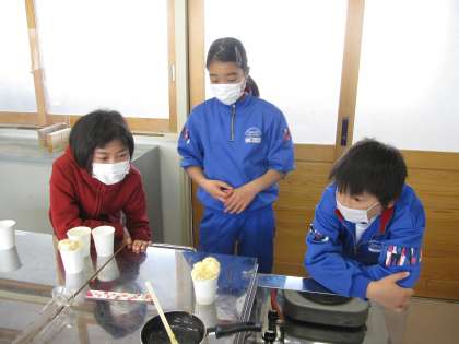 3月15日(火)授業風景〜1・2校時4年理科〜カルメ焼き作り(その5) 公開日 2022/03/15 更新日 2022/03/15 2021.9〜できごと 楽しく復習ができました。 片付けもみんな協力し合って良くできました。