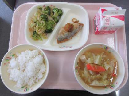 「ごはん・牛乳・アジの薬味ソース・キャベツの味噌汁・ブロッコリーのおかか和え」のヘルシーメニューです。今日の「キャベツの味噌汁」は、「キャベツの味噌煮込み」といってもよいくらいなキャベツがメインになっているる料理です。なお、今日の給食に使われているキャベツは藤岡産のキャベツで、甘みのある冬キャベツです。キャベツのおいしさを味わってほしいメニューです。
