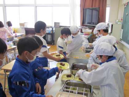 たくさんのお友達のいる2年生。みんなで協力しながら給食の準備ができました。