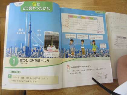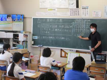 5年生の算数です。整数と小数の学習です。落ち着いて学習しています。